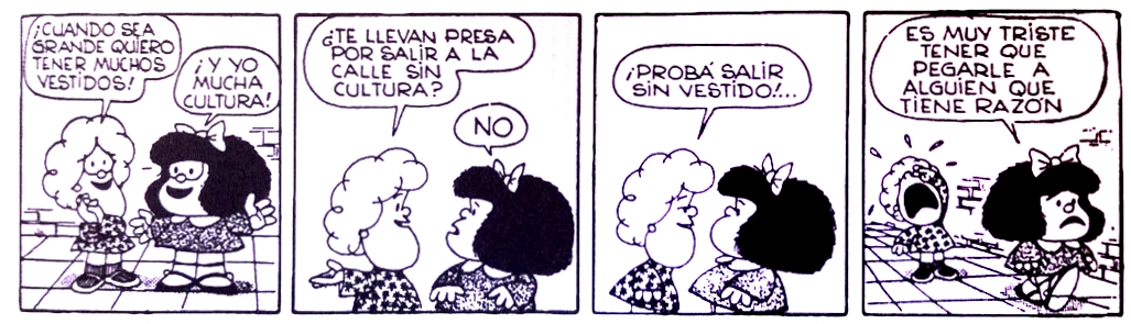 Este chiste de Mafalda, yo diría bastante asertivo, nos pone, al menos, ante una disyuntiva: ¿Qué es mejor? ¿Dónde está el punto medio exacto? Muchos diremos que Mafalda es la más madura y ve lo realmente importante y trascendente, aunque Susanita también tiene su punto de verdad. ¿Quién tiene razón? Pero yendo a lo que nos ocupa, el texto evangélico, podemos decir que esta tira cómica, como telón de fondo, nos podría servir para pensar algunos puntos importantes que escuchamos hoy.